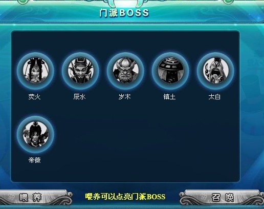 这是新推出的门派BOSS,一共有6个,从左到右需要1-6级的门派才有权利召唤出来的,