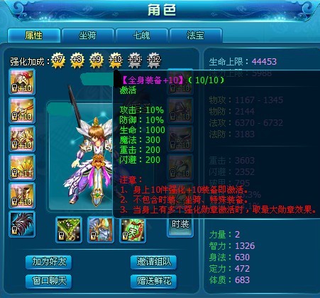 2、装备强化;装备强化是提升装备的必要条件,如果全身装备加到7-12都会获得不一样的属性加成,关于装备怎样强化,我以前说过了,在这里我从新给大家说一下,装备+7很简单,首先把所有的装备用初级强化石加到4,剩下的5-7就需要用中级强化石了,也是最容易掉级的时候,这个时候,我们就需要垫手了,装备上5很容易,上6有点困难,如果点了2次没上去,这时候就把另外的装备往上加,如果别的装备上了6这个时候就吧之前掉级的装备再上一次,这时候有很大几率会失败,一旦失败立刻去加+6的装备,有很大几率成功,如果打上7及强化幸运石,这时候成功率会达到78%左右,加上之前的垫手,我想不会失败了吧。我在这里只说了一件装备的强化方法,剩下的也可以这样,然后说+8,这个就有点困难了,还是老办法垫手,吧一件买的普通装备,加到失败,只要失败立刻上加7的装备,还有另外一种方法,就是看别人在冲击8或者9的时候,对方一直失败的话,这时候抓紧时机立刻加8,积累别人的失败率也是垫手的一种方法,加9很好用。
