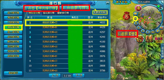 【活动内容】在活动时间结束后,神兵排行榜总分榜前10名的玩家可获得丰厚奖励。