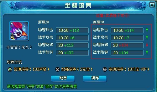 不需要花大量性质去解释如何培养坐骑,一针见血的说就是每次培养坐骑的附加值比上次附加的多就可以保存了
