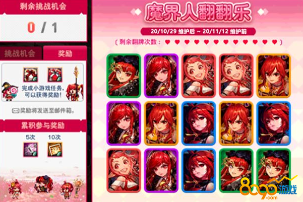 玩家在10月29日-11月12日活动期间,每天参与魔界人翻翻乐活动,即可获得蕴含魔法气息的礼盒、挑战成功礼盒等奖励,累积参与天数之后,即可获得知源魔法师神器卡册、知源魔法师收集卡片等奖励。