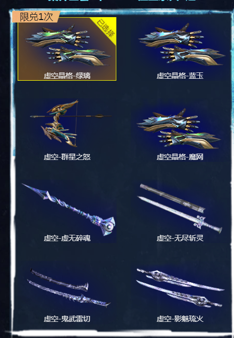 玩家们可以根据自己喜欢的选择一个的,这个需要玩家们去兑换的。但是玩家们必须要集齐6个boss才可以兑换虚空永久8选1的,还没有收集完boss的玩家们需要去做任务的哦。小编建议玩家们选择虚空晶格魔网。这个活动的截止时间是11月29日,玩家们需要收集的boss是:虚空魔像、奥安、精绝女王、龙陵尸皇、Z博士和雷藏。这个活动还有一些其他的奖励在等着大家去兑换呢,主要是有:月白、光影世纪、天启陷阱等等。