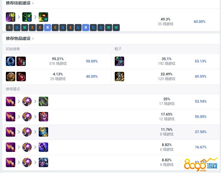 提莫主要是靠平A打输出,加点方面还是选择主E副Q,第一件装备选择直接裸出纳什之牙,无论什么版本,提莫的第一件装备几乎都是这件纳什之牙,神话装统一选择峡谷制造者,这件装备切合提莫的程度,就像是峡谷制造者切合蛇女的程度一样,第三件装备就很灵活了,视阵容而出即可。