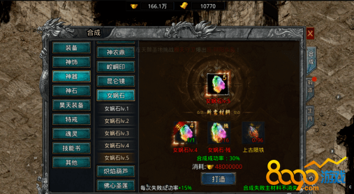 在赤月龙城游戏中,神器基本上都是靠后期合成的,玩家开局之后可以获得几个基础的神器,剩下的神器全部都是合成获得的,神器合成需要对应神器的残片和上古陨铁。