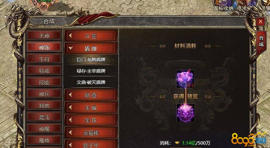 合成盾牌需要特定的材料,可能包括涅槃神石。