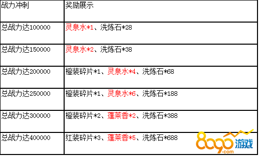活动说明:活动期间,总战力达到相应条件,即可领取奖励,橙装碎片、绑定元宝、洗炼石大放送,机不可失,赶快来提升人物战力吧!