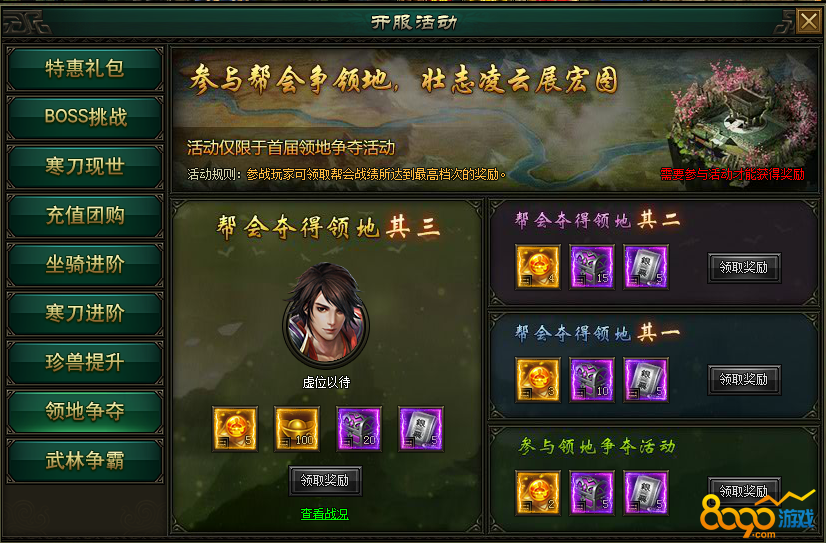活动时间:开服首届领地争夺活动