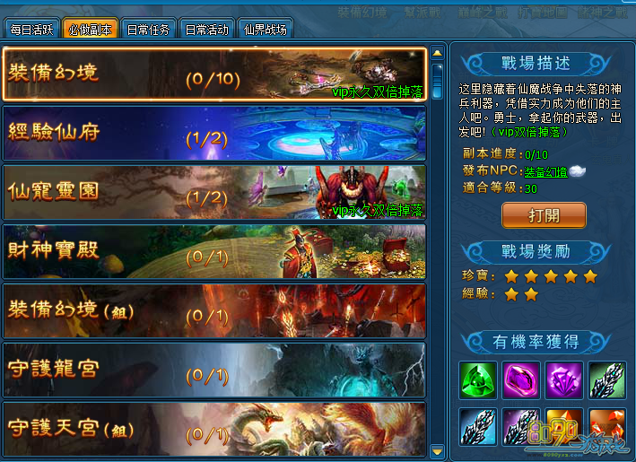 4、每一层有规定通关时间,未能在规定时间内通关,则副本自动结束。