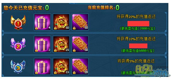 累计消费12888元宝可获得: 随机进阶包*50、高级铜币卡*50、999朵玫瑰*2