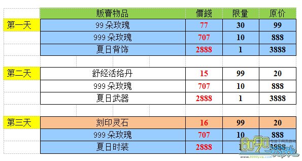 累计消费2888元宝可获得: 随机进阶包*10、高级铜币卡*15、99朵玫瑰*5