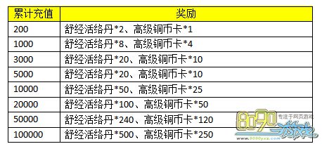 活动期间,只要累积充值对应金额,即可领取相应档次奖励,每个奖励最多只能领取1次。