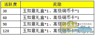 活动期间,每日活跃度达到30、60、90、120可分别获得额外奖励。