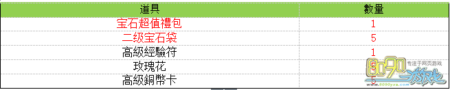 活动期间,每日首次充值任意金额即可获得超值大礼。超值大礼包括:宝石超值礼包、二级宝石袋、高级经验符、玫瑰花、高级铜币卡等珍贵道具。