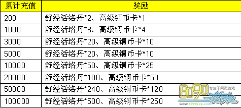 活动期间,只要累积充值对应金额,即可领取相应档次奖励,每个奖励最多只能领取1次。
