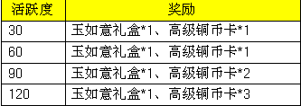 活动期间,每日活跃度达到30、60、90、120可分别获得额外奖励。