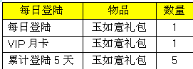 活动期间,每日登陆即可获得超值大礼,VIP月卡及以上玩家每日还可额外获得道具,同时活动期间累积登陆天数满5天还能再领海量奖励。