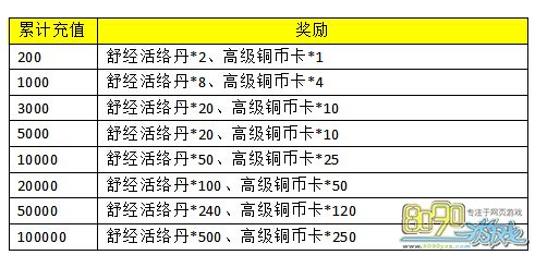 活动期间,只要累积充值对应金额,即可领取相应档次奖励,每个奖励最多只能领取1次。