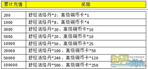 活动期间,只要累积充值对应金额,即可领取相应档次奖励,每个奖励最多只能领取1次。