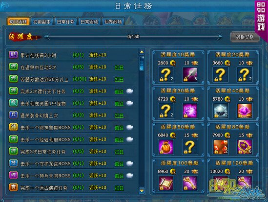 当玩家完成所有任务可获得额外的奖励:品质石4个、宝藏钥匙4个、禁地宝图、高级藏宝图。那么如何到5星奖励呢??具体步骤如下:打开“日常任务”选择“打开”弹出一个新窗口,点击“提升奖励”一直刷新到5星。刷新令的主要获得途径就是通过各种活动获得,野外怪物也可掉落。