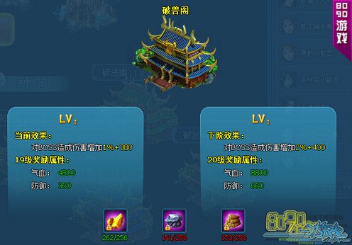 在8090万界中,玩家升级到60级可以开启神阁系统,神阁分为破环阁、破法阁、破剑阁。提升这些阁楼等级主要是为了对抗其他玩家的职业,阁楼提升属性是增加伤害和阁楼等级奖励的。