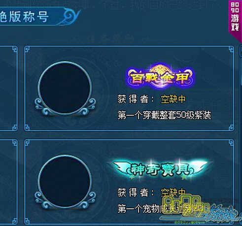 这些称号都是按要求达标了之后就能获得称号的,所以想要获得称号只要到达一定条件就有了。那么大家可能会对50级的紫色装备称号有疑问,因为50级是没有戒指的,其实这个说的是大于50级的装备就可以了,比如你把40级紫的戒指升级到60级紫的戒指,如果你是第一个,那么你就能获得这个百战金甲的称号。