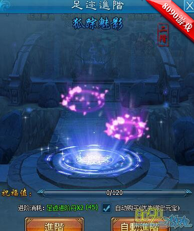 其中足迹系统是当玩家等级达到65级之后才会开启,装备足迹的玩家不仅拥有华丽的行走轨迹,还能增强战斗力。当玩家拥有足够的道具时,可选择进阶足迹。消耗道具可获得祝福值,祝福值越高,则成功进阶的概率越大。
