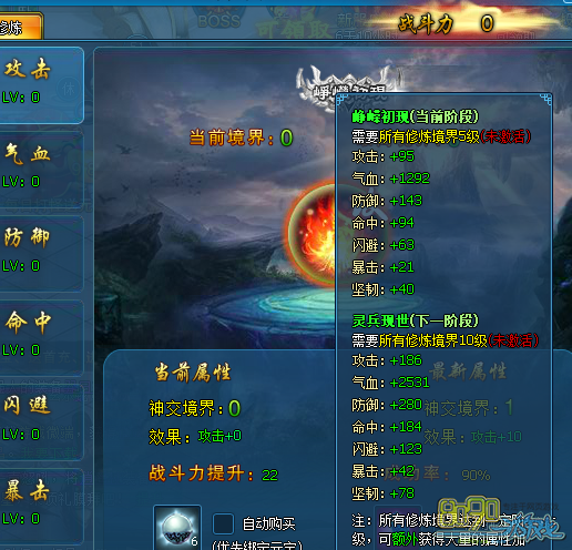 提升修炼丹会出现一定的失败几率,失败了会降低神兵境界。但是不必担心,使用神兵保护符可以100%成功,神兵保护符可以在游戏中通过以低等级保护符合成到高级保护符来进行修炼保护。所有境界修炼到一定阶级可以获得额外大量属性,并获得成就和境界。