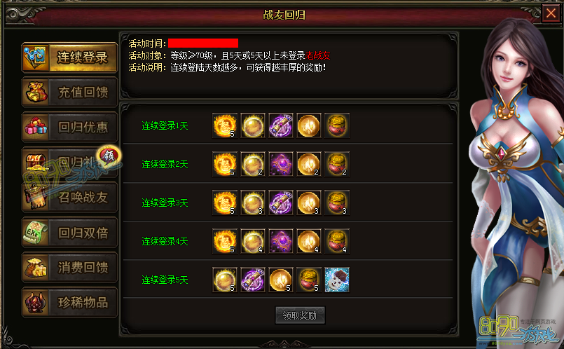 【活动说明】:连续登陆天数越多,可获得越丰厚的奖励