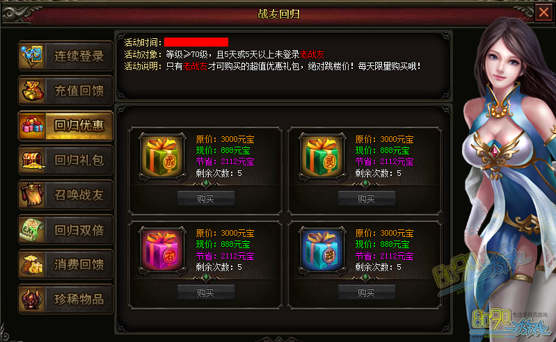 【活动说明】:只有老战友才可购买超值优惠礼包,绝对跳楼价!每天限量购买哦!