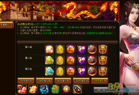 活动期间,累计提取达10万元宝且排名前3的玩家可获得排名奖励(奖励在活动结束后发放)