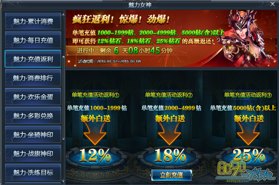 活动三:魅力女神·充值返利