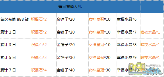 【活动内容】:活动期间,小充一把玩玩,奖励大把爽爆!累计1天、2天、3天、5天,7天,每天仅需充值888钻石以上,即可领取价值28888钻石大礼包!战力飙升6500+!