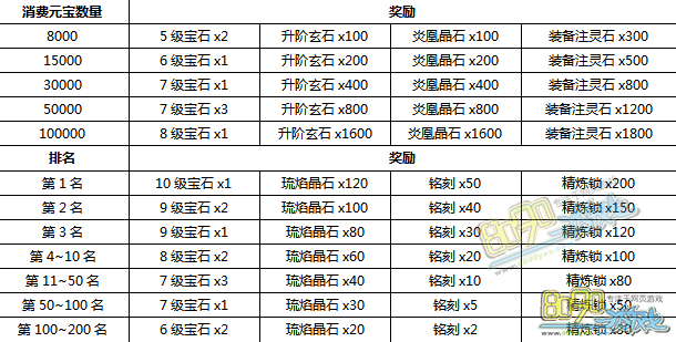 活动期间累计消费达到一定元宝可获得奖励,且玩家可根据个人消费排名获得对应奖励。