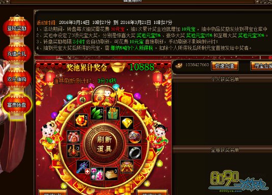 烈火战神3月16日-23日好运转盘 极品奖励随机抽取就看你的啦