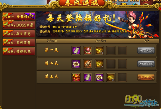 温馨提示:登陆好礼请在活动当天领取,逾期不予补发。