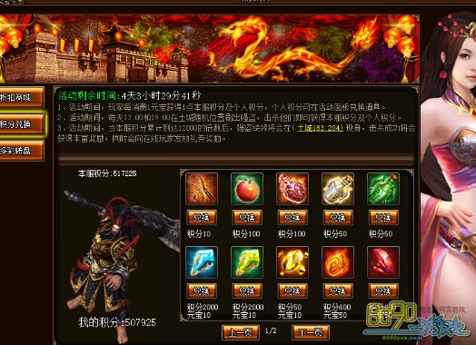 A.活动期间,玩家每消费1元宝获得1点本服积分及个人积分,个人积分可在活动面板兑换道具。