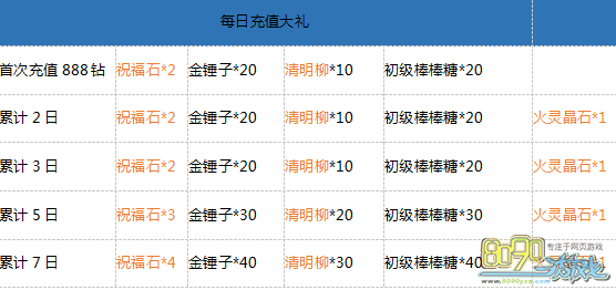 【活动内容】:活动期间,小充一把玩玩,奖励大把爽爆!累计1天、2天、3天、5天,7天,每天仅需充值888钻石以上,即可领取价值28888钻石大礼包!战力飙升6500+!