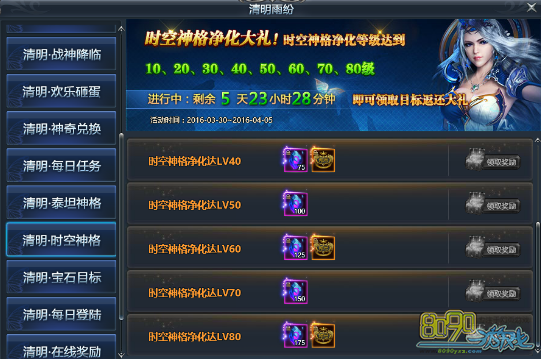 时空神格净化达LV80,即可获得“时空·大师”称号,永久提升11000战力