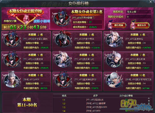 本期女仆排行榜仅计算“波斯小猫咪”女仆的成长,其他女仆成长不计入排行榜内。