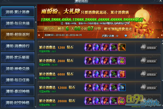 【活动内容】:活动期间,每天消费最多的前50名玩家,都可以获得巨额奖励!
