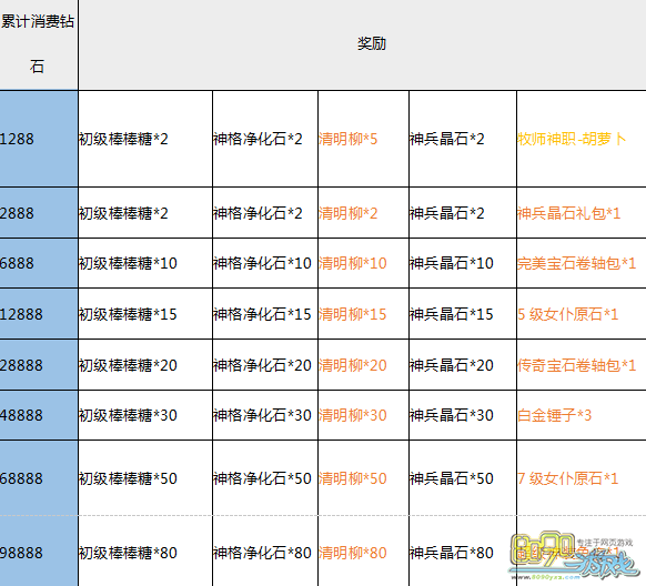 【活动内容】:活动期间累计消费达到一定额度即可全面返还豪礼!大量神格净化石、超稀有牧师武器“胡萝卜”、5级女仆原石、999朵蓝玫瑰、高级、顶级技能书,极品道具不可错过!