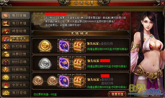 充值排名奖励内容
