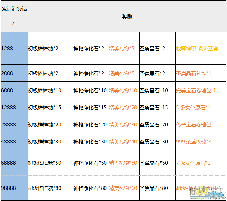 【活动内容】:活动期间累计消费达到一定额度即可全面返还豪礼!大量神格净化石、超稀有牧师圣翼、5级女仆原石、999朵蓝玫瑰、超级神器抵抗虚弱,极品道具不可错过!