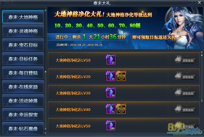 大地神格净化达LV30,即可获得神格净化石*50