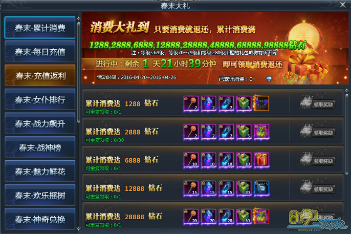 活动四:春末大礼·每日充值