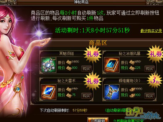 2、转盘面板奖励每隔1小时自动刷新,可花费10元宝对面板奖励快速进行刷新。