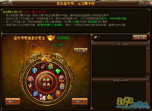 a) 活动期间,累计提取元宝10W以上且排行前3的玩家可获得排行奖励,奖励于活动结束时以邮件发送。