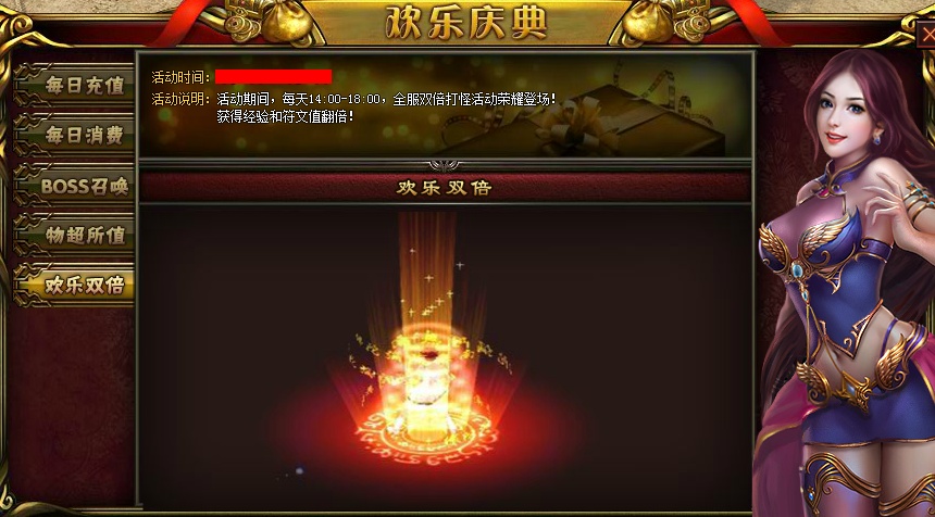 【活动内容】:活动期间,每天14点~18点,全服双倍打怪活动荣耀登场!
