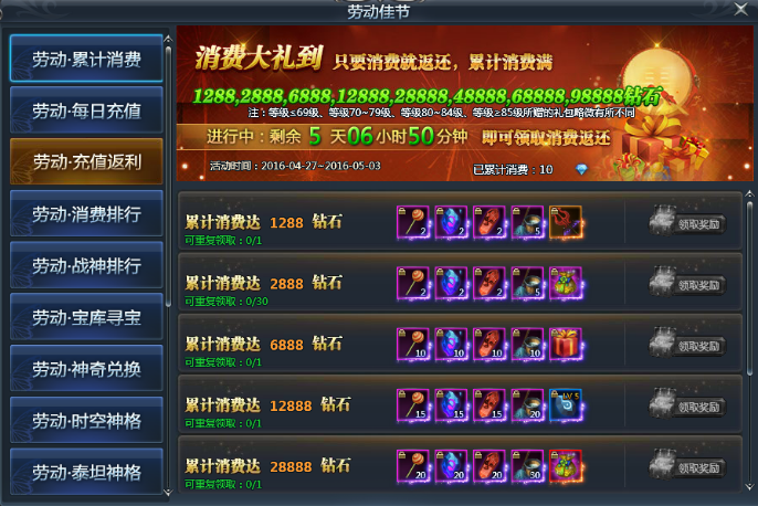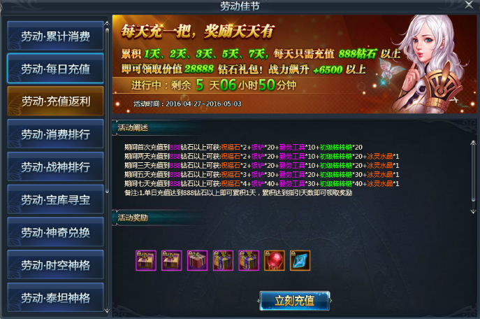 活动五:劳动佳节·每日充值