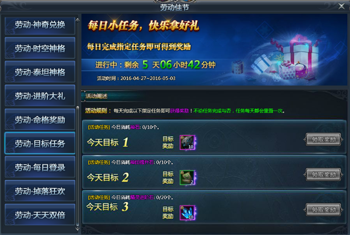 【活动内容】:每日小任务,快乐拿好礼!每日完成指定任务即可得到奖励!